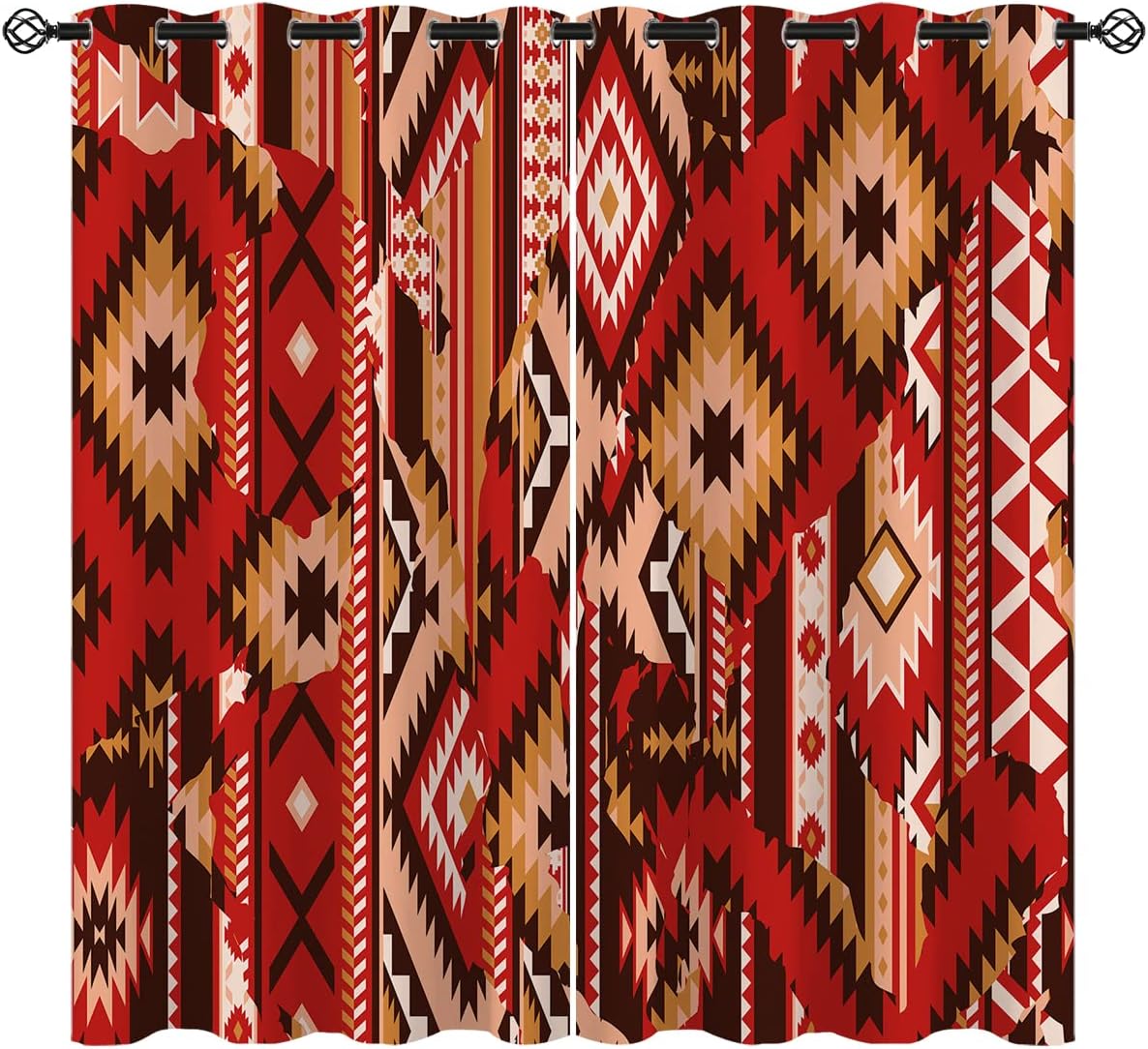These print curtains are perfect for Living room, bedroom, kids room, kitchen, yard, patio, parlor, sliding door with Aztec Tribal Geometric Native Southwestern Ethnic Navajo pattern.- Unique design:· Save energy costs by insulating against heat and cold.· Reduce noises from busy streets and high-traffic areas.· Protect furniture from sun damage and fading.· Provides complete privacy when needed· Perfect for any bedroom, office kids room and living room.- Package Included:· Blackout window curtains 2 Pcs set ( two panels).- Material:· Our Blackout Curtain Liners are crafted from a durable soft and thick triple weaved blackout fabric which can block out sunlight and UV rays. The darker color of the fabric, the more light it can block.- Easy Care Instructions:· Machine washable in cold water· Do not bleach.· tumble dry on low· low temperature ironing- Notes:· For your curtains to be more perfect, please choose a size 5-10 Inch larger than the actual window width.· here may be slight differences in colors on different displays. If you have any questions about the product, please feel free to contact us.