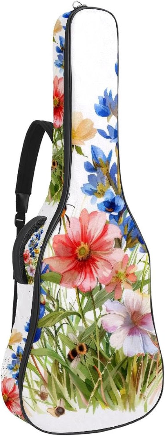 Give your valuable guitar the premium protection it deserves. Our Cute Printed Guitar Gig Bag is engineered for the modern musician who demands both security and convenience. Whether you're heading to a gig, a practice session, or on a short trip, this bag ensures your instrument arrives in perfect condition, ready to play.Constructed from durable, waterproof Oxford cloth, this bag stands up to the elements and the test of time. The interior is a sanctuary for your guitar, featuring ultra-thick padded sidewalls and a soft, anti-scratch lining that cradles your instrument, preventing scratches and damage. The heavy-duty rubber base acts as a shield against everyday bumps and allows for stable placement on any surface.Organization is effortless with multiple dedicated compartments. Two main storage pockets keep all your essential accessories—like a foldable music stand, tuner, picks, cables, and extra strings—neatly sorted and easily accessible. Never fumble for your tablet or sheet music again; the specially designed back pocket keeps them safe and separate.For a perfect, secure fit, the adjustable neck support and internal Velcro strap ensure your guitar does not shift around inside the bag, providing peace of mind with every carry.Care Instructions: To preserve the quality and appearance of your gig bag, please do not machine wash. Simply wipe clean with a damp cloth to remove any dirt or stains.